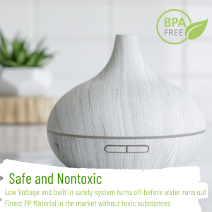 ⭐CLASSICALLY MODERN DESIGN: This diffuser is coated with a light wood grain, giving it a natural and classic design that goes well with any decor. Compact and portable, you can use this humidifier anywhere.